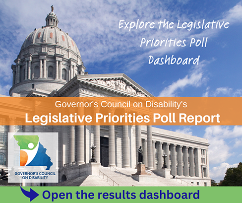 Each year the Governor's Council on Disability distributes a Legislative Priorities Poll to assist the Governor's Council on Disability in understanding issues important to Missourians with disabilities and those who work and live with them. The results are also shared with state legislators and elected officials. To participate, please choose one of the options below.